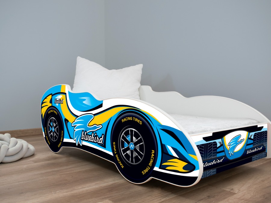 Ponujamo vam posebne posteljice dizajnirane posebno za otroke. Narejen z idejo in veliko skrbjo, da se otrok v njem počuti udobno in povsem varno. Zahvaljujoč ovalni obliki in fleksibilni končni obdelavi, postelja ščiti otroka od možnega udarca. Vzmetnica je vglobljena v okvir, kar vam omogoča da kontrolirate premikanje otroka pri spanju. Večbarvni dizajn posteljice bo naredilo, da se vaš otrok z veseljem vklopi v njega in bo lahko sanjal o dirkalnih avtomobilih.